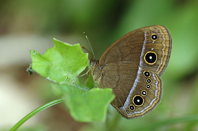 小蛇目蝶 Mycalesis francisca 展翅寬45~50mm,下翅反面有七枚眼紋,第五枚特別大