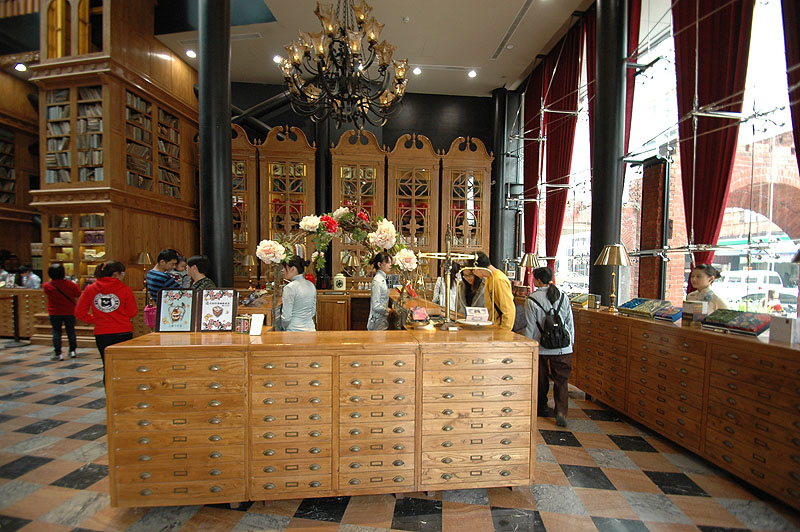 裡面裝潢成古老圖書館的樣子,真像是闖入了電影哈利波特魔法學院裡頭的場景