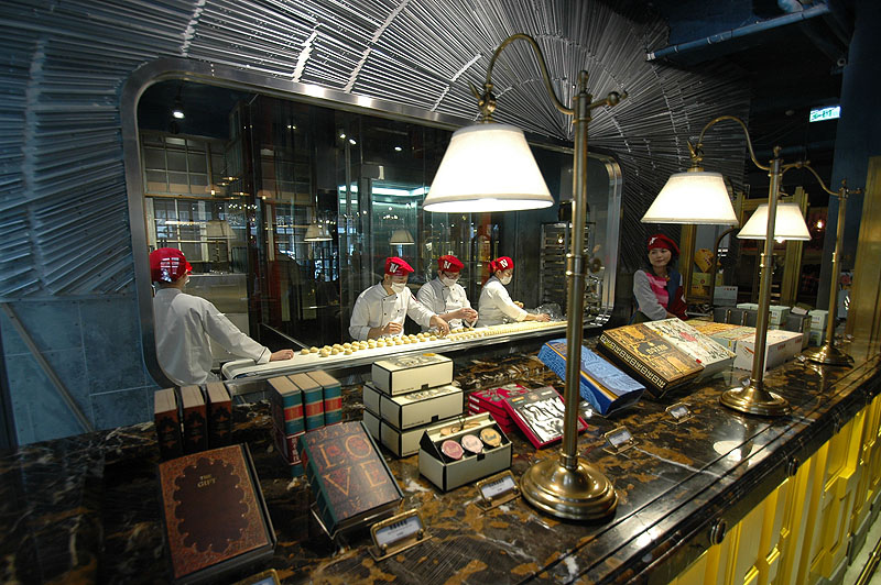 回到一樓,最裡面可以看到員工正在製作糕餅,同樣也有販售,只是種類比起宮原眼科較少